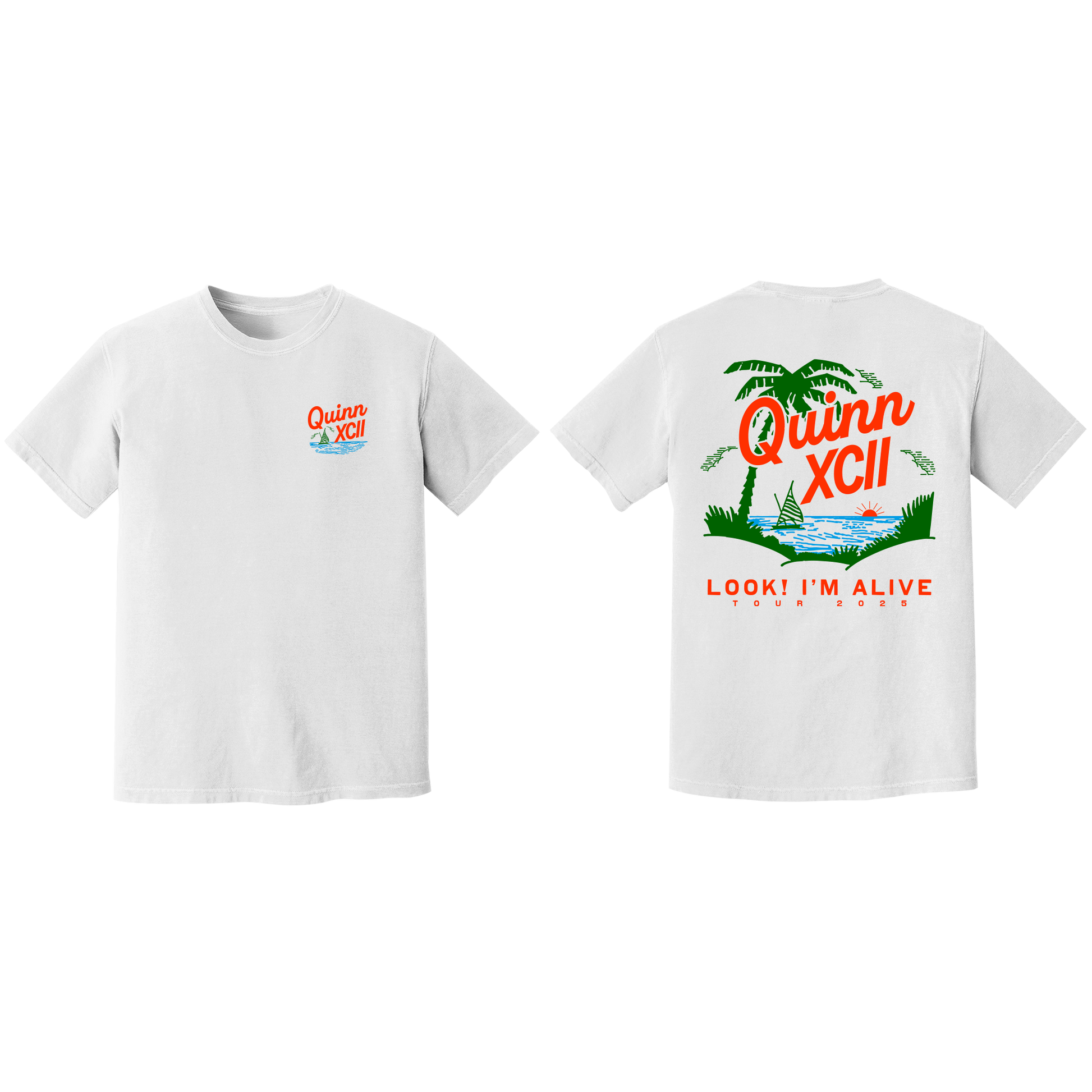 The LOOK! I'm Alive Lake T-Shirt is a relaxed fitting, heavyweight t-shirt in White featuring a screenprinted design on the front and Back. Constructed from 100% ringspun cotton.
